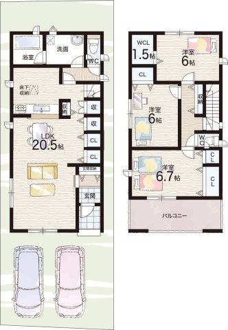 - ※完成予想図やCG合成画像は、門塀・植栽・庭・外観等、実際とは多少異なる場合があります。