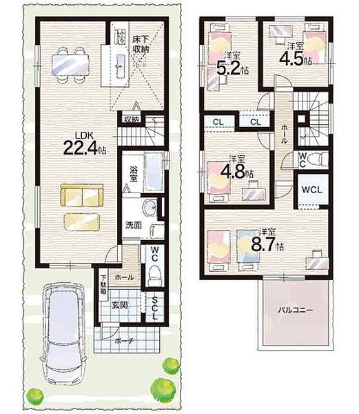 - ※完成予想図やCG合成画像は、門塀・植栽・庭・外観等、実際とは多少異なる場合があります。