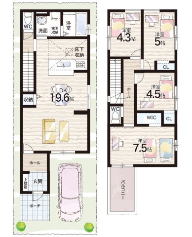 - ※完成予想図やCG合成画像は、門塀・植栽・庭・外観等、実際とは多少異なる場合があります。