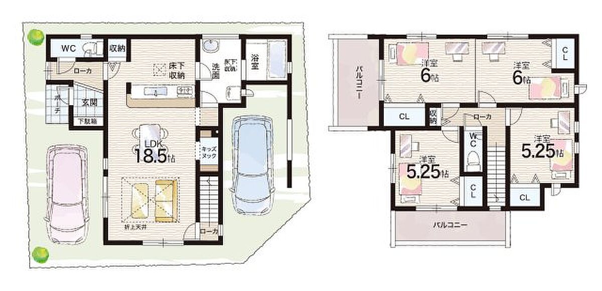 - ※完成予想図やCG合成画像は、門塀・植栽・庭・外観等、実際とは多少異なる場合があります。