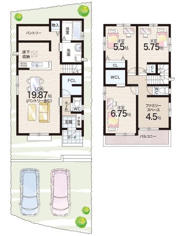 - ※完成予想図やCG合成画像は、門塀・植栽・庭・外観等、実際とは多少異なる場合があります。