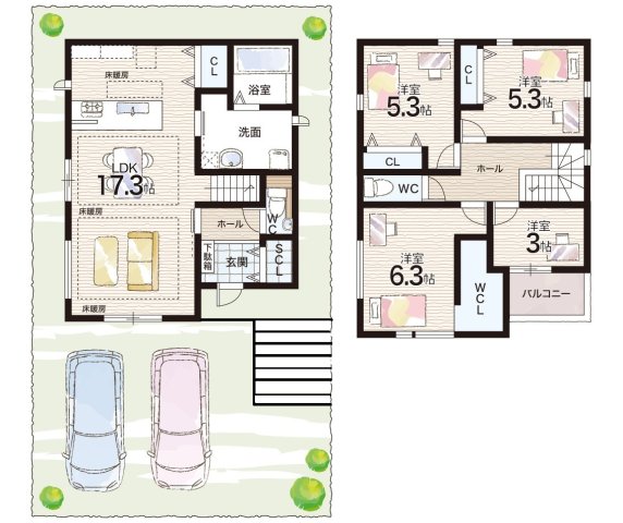 - ※完成予想図やCG合成画像は、門塀・植栽・庭・外観等、実際とは多少異なる場合があります。