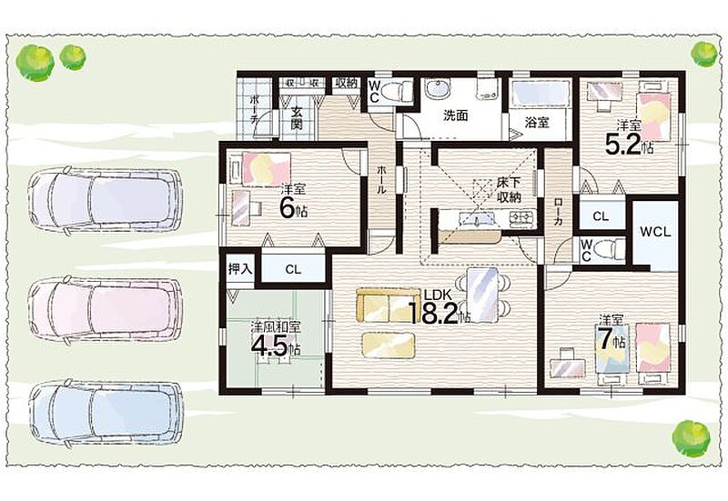 - ※完成予想図やCG合成画像は、門塀・植栽・庭・外観等、実際とは多少異なる場合があります。