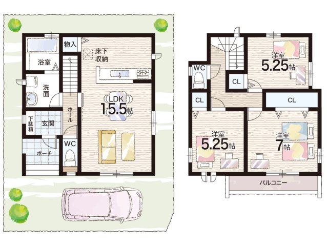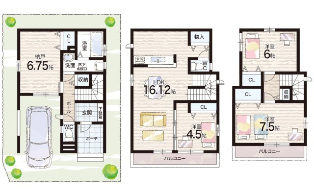 - ※完成予想図やCG合成画像は、門塀・植栽・庭・外観等、実際とは多少異なる場合があります。