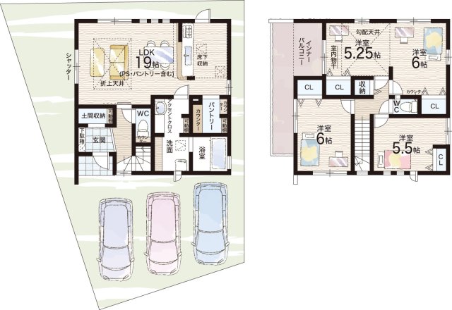 - ※完成予想図やCG合成画像は、門塀・植栽・庭・外観等、実際とは多少異なる場合があります。