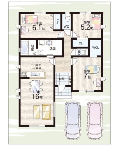 - ※完成予想図やCG合成画像は、門塀・植栽・庭・外観等、実際とは多少異なる場合があります。