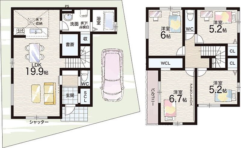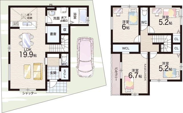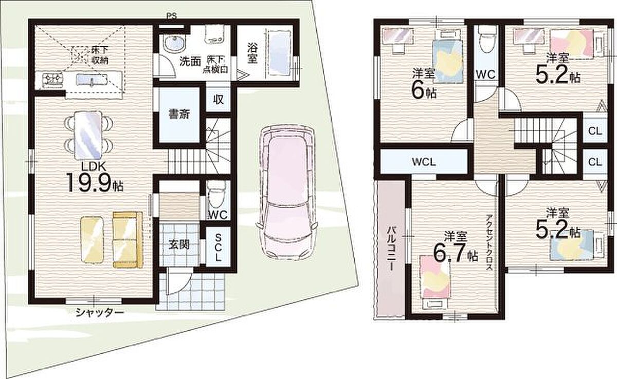 - ※完成予想図やCG合成画像は、門塀・植栽・庭・外観等、実際とは多少異なる場合があります。