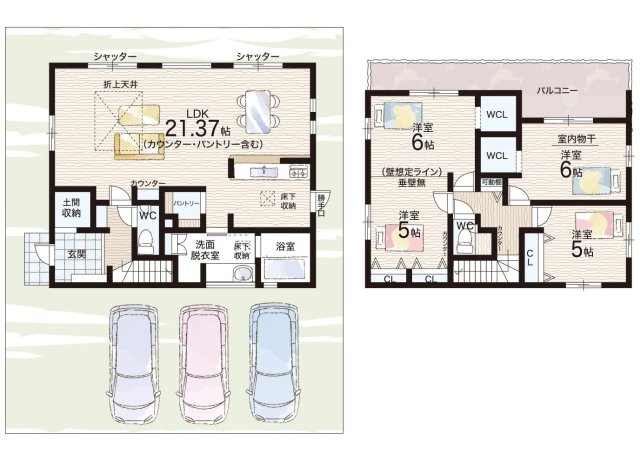 - ※完成予想図やCG合成画像は、門塀・植栽・庭・外観等、実際とは多少異なる場合があります。