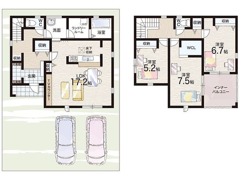 - ※完成予想図やCG合成画像は、門塀・植栽・庭・外観等、実際とは多少異なる場合があります。