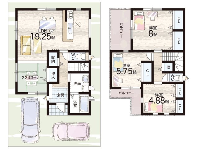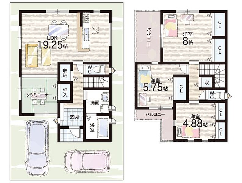 - ※完成予想図やCG合成画像は、門塀・植栽・庭・外観等、実際とは多少異なる場合があります。