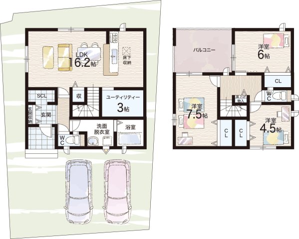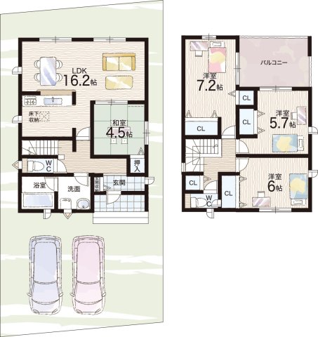 - ※完成予想図やCG合成画像は、門塀・植栽・庭・外観等、実際とは多少異なる場合があります。