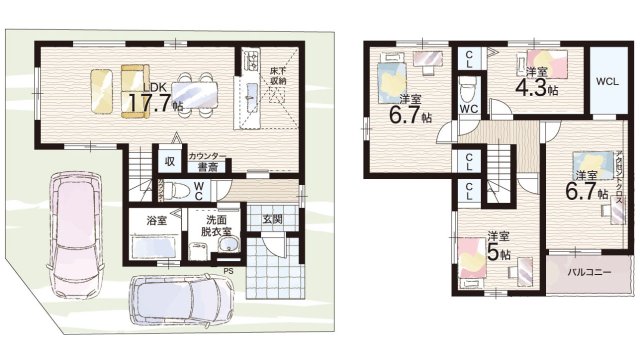 - ※完成予想図やCG合成画像は、門塀・植栽・庭・外観等、実際とは多少異なる場合があります。
