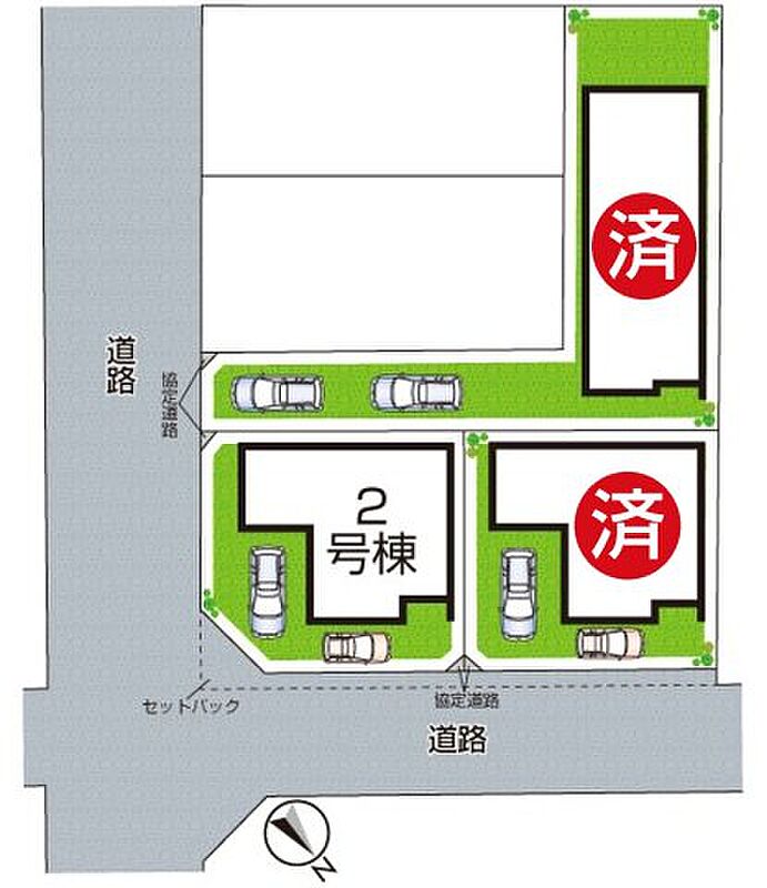 | 駐車場 | 2台 | 道路の幅員 | 北東側4.0m公道 |