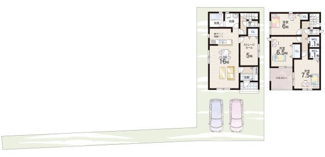 - ※完成予想図やCG合成画像は、門塀・植栽・庭・外観等、実際とは多少異なる場合があります。