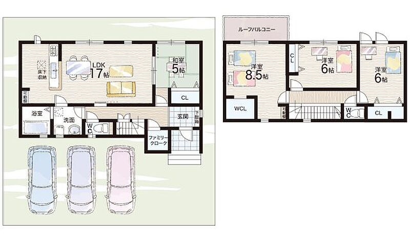 | 駐車場 | 3台 | 道路の幅員 | 北側8.0m公道 |