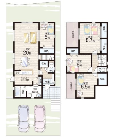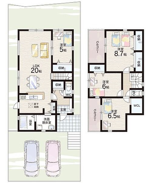 - ※完成予想図やCG合成画像は、門塀・植栽・庭・外観等、実際とは多少異なる場合があります。