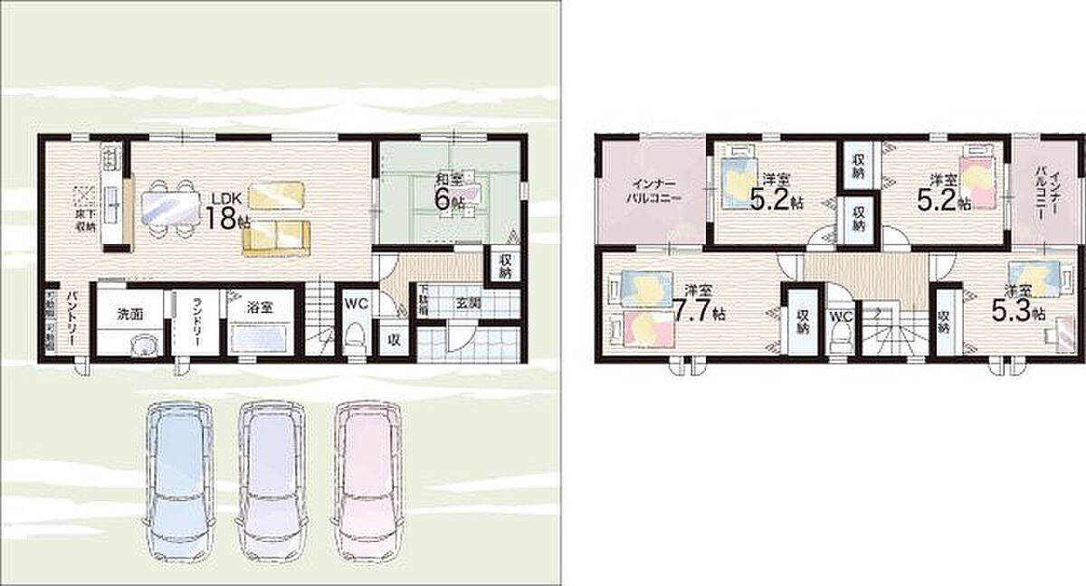 - ※完成予想図やCG合成画像は、門塀・植栽・庭・外観等、実際とは多少異なる場合があります。