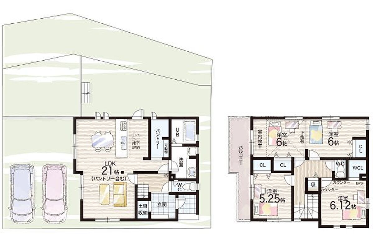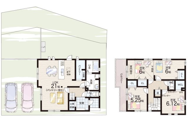 - ※完成予想図やCG合成画像は、門塀・植栽・庭・外観等、実際とは多少異なる場合があります。