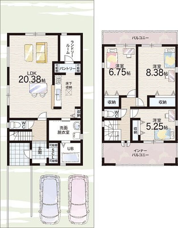 - ※完成予想図やCG合成画像は、門塀・植栽・庭・外観等、実際とは多少異なる場合があります。
