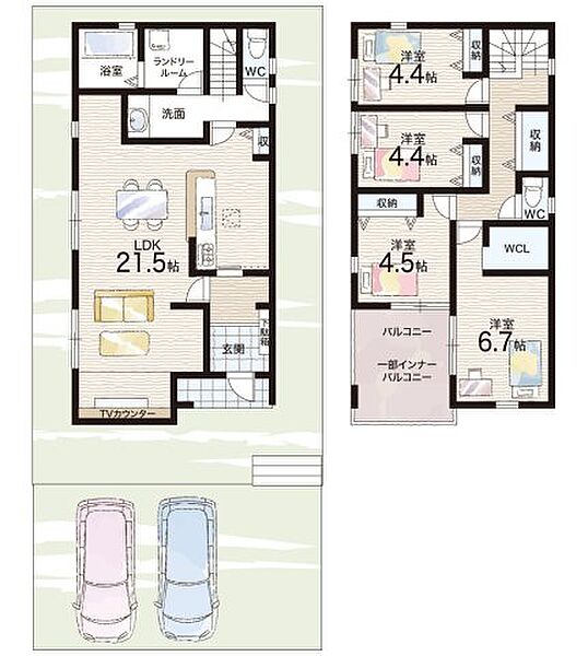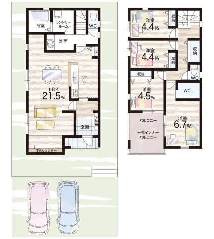 - ※完成予想図やCG合成画像は、門塀・植栽・庭・外観等、実際とは多少異なる場合があります。