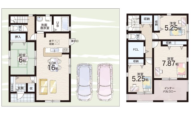 - ※完成予想図やCG合成画像は、門塀・植栽・庭・外観等、実際とは多少異なる場合があります。