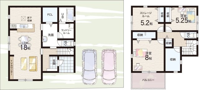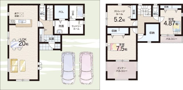 2号地 間取り 2LDK+S(納戸) 価格 3080万円 建物面積 109.35m2 土地面積 130.80m2 -