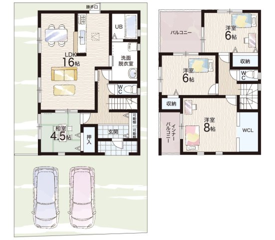 - ※完成予想図やCG合成画像は、門塀・植栽・庭・外観等、実際とは多少異なる場合があります。