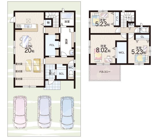 - ※完成予想図やCG合成画像は、門塀・植栽・庭・外観等、実際とは多少異なる場合があります。
