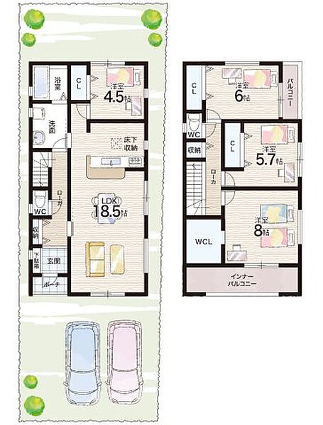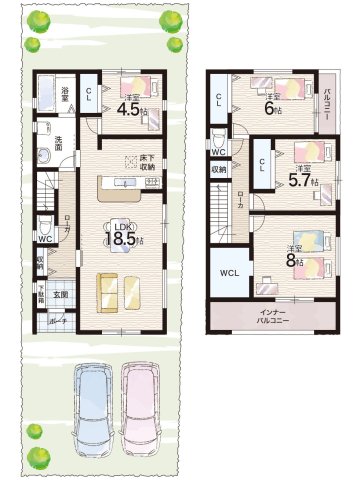- ※完成予想図やCG合成画像は、門塀・植栽・庭・外観等、実際とは多少異なる場合があります。