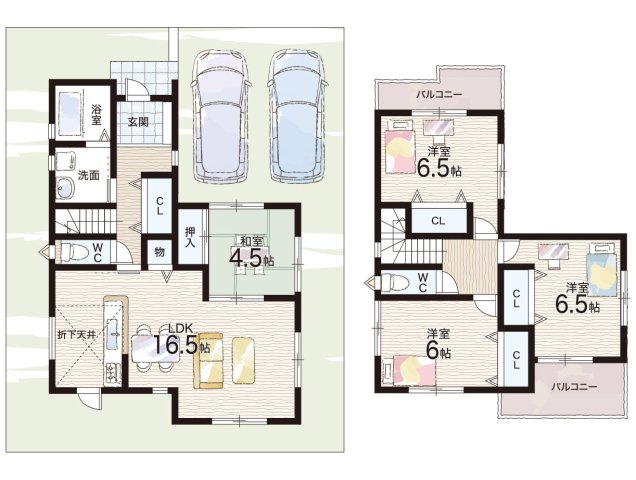 - ※完成予想図やCG合成画像は、門塀・植栽・庭・外観等、実際とは多少異なる場合があります。
