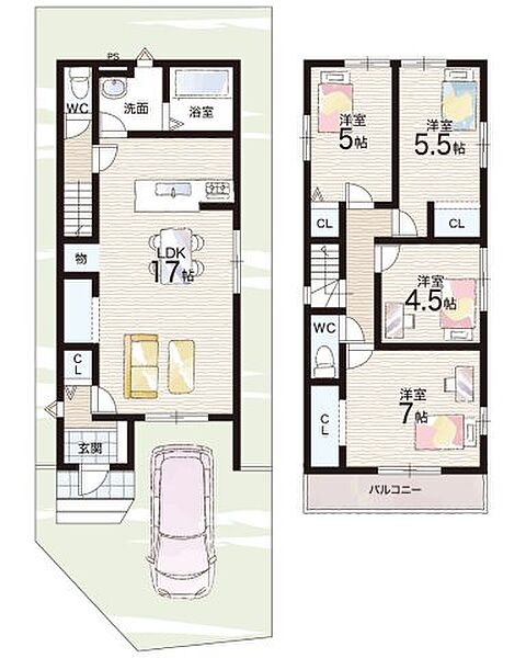 - ※完成予想図やCG合成画像は、門塀・植栽・庭・外観等、実際とは多少異なる場合があります。