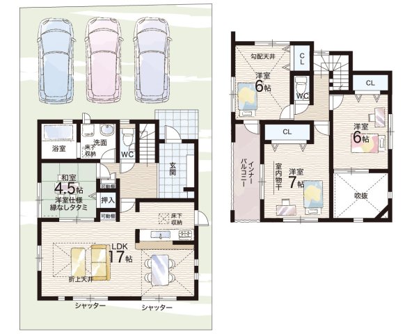 - ※完成予想図やCG合成画像は、門塀・植栽・庭・外観等、実際とは多少異なる場合があります。