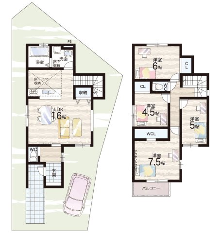 - ※完成予想図やCG合成画像は、門塀・植栽・庭・外観等、実際とは多少異なる場合があります。