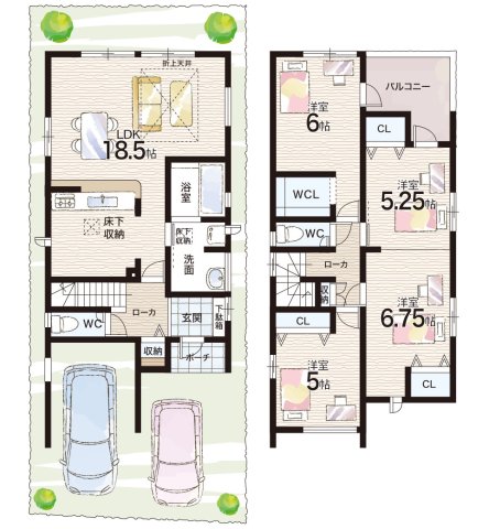 - ※完成予想図やCG合成画像は、門塀・植栽・庭・外観等、実際とは多少異なる場合があります。