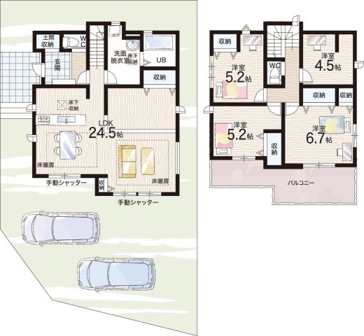 - ※完成予想図やCG合成画像は、門塀・植栽・庭・外観等、実際とは多少異なる場合があります。