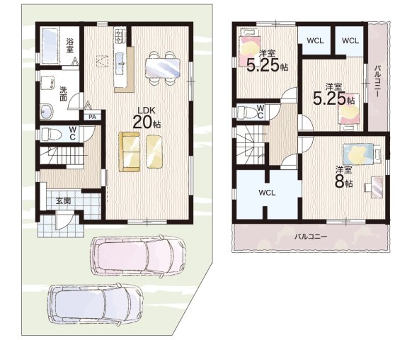 | 建物面積 | 99.36m2~108.47m2 | 土地面積 | 114.63m2~167.32m2 |