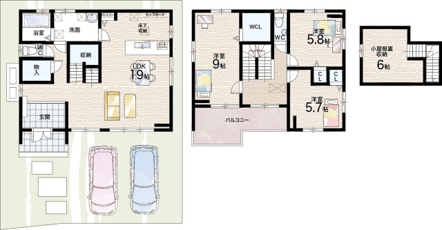 - ※完成予想図やCG合成画像は、門塀・植栽・庭・外観等、実際とは多少異なる場合があります。