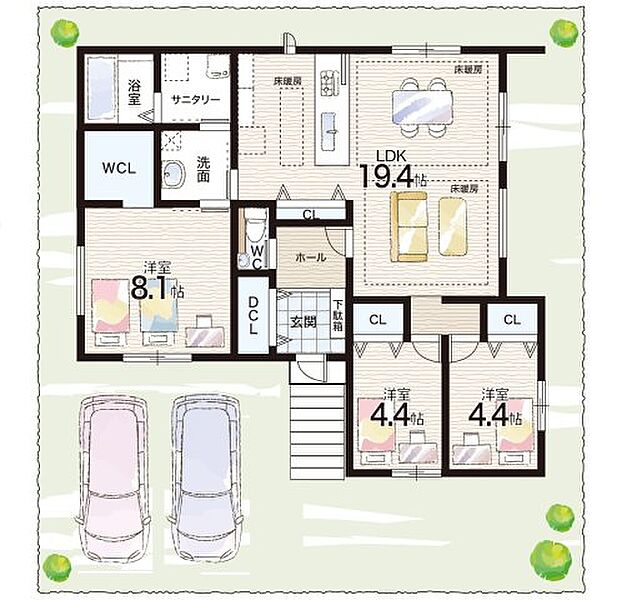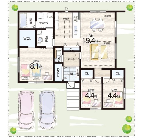 - ※完成予想図やCG合成画像は、門塀・植栽・庭・外観等、実際とは多少異なる場合があります。