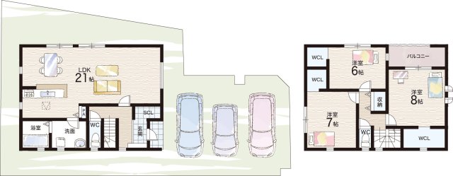 | 建物面積 | 99.36m2~108.47m2 | 土地面積 | 114.63m2~167.32m2 |