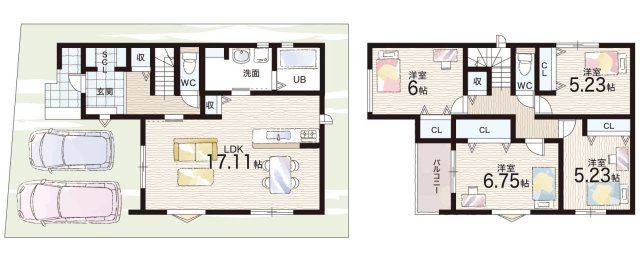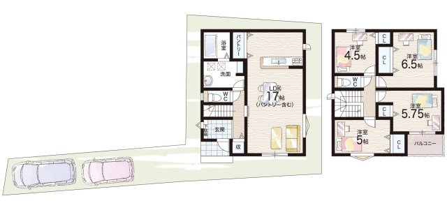 - ※完成予想図やCG合成画像は、門塀・植栽・庭・外観等、実際とは多少異なる場合があります。