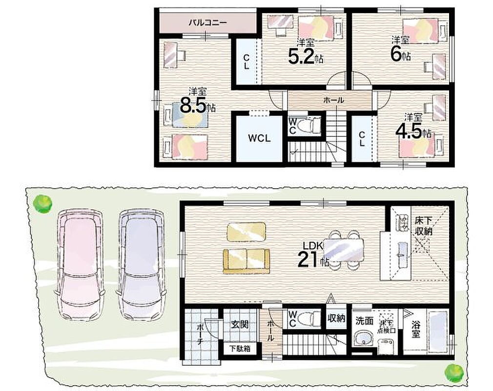 - ※完成予想図やCG合成画像は、門塀・植栽・庭・外観等、実際とは多少異なる場合があります。