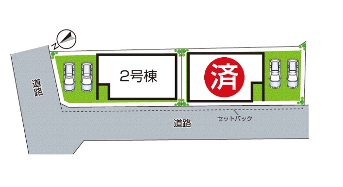 | 駐車場 | 2台 | 道路の幅員 | 北西側4.1m公道 |