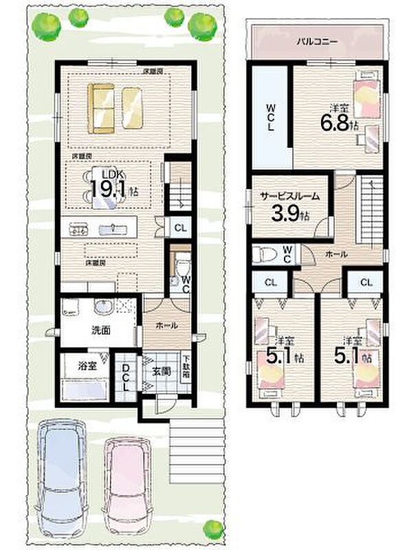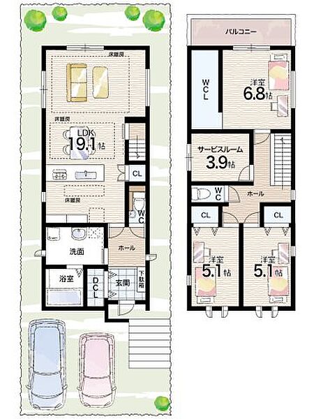 - ※完成予想図やCG合成画像は、門塀・植栽・庭・外観等、実際とは多少異なる場合があります。