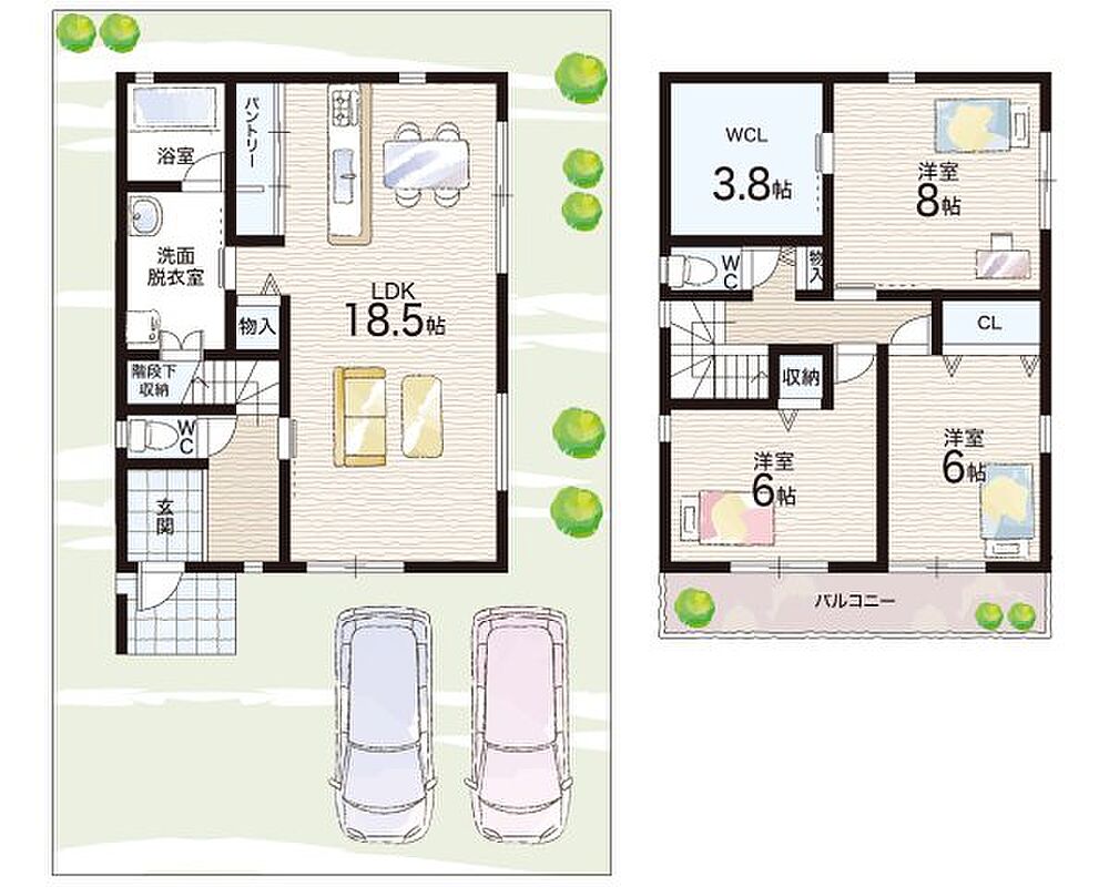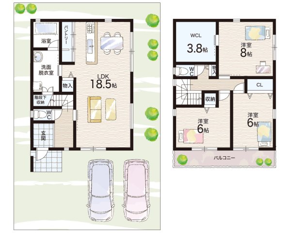 - ※完成予想図やCG合成画像は、門塀・植栽・庭・外観等、実際とは多少異なる場合があります。