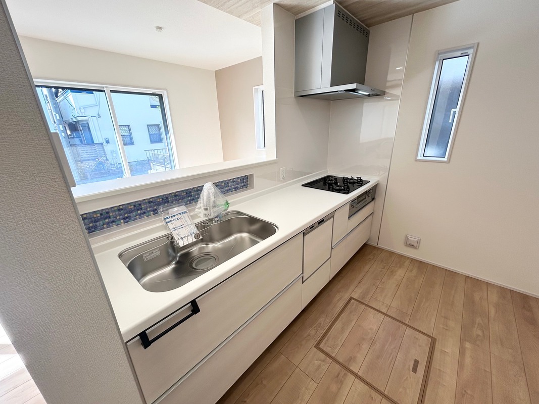 ●キッチンに食器洗乾燥機と浄水器付、浴室に浴室暖房乾燥機付、洗面化粧台に三面ミラーとシャワー水栓付、トイレにウオシュレット付、門柱ポストに宅配ボックス付、キッチン大型パントリー。南側3面バルコニー!