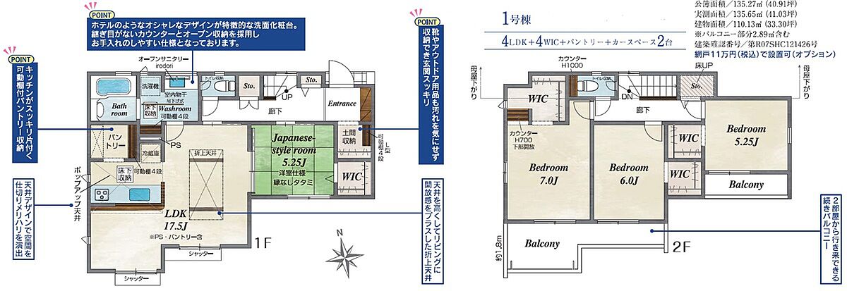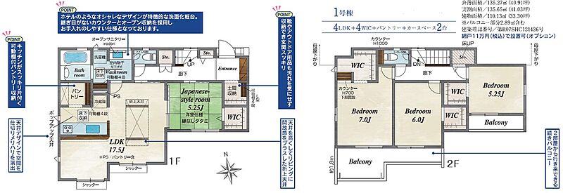 | 間取り | 4LDK+WIC×3+パントリー+土間収納 | 建物構造 | 木造2階建 |