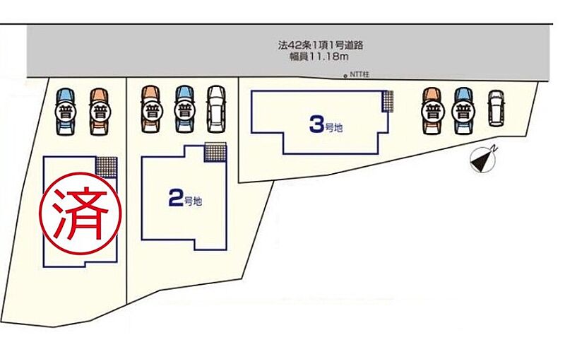 | 駐車場 | 3台 | 道路の幅員 | 北西側11.18m公道 |