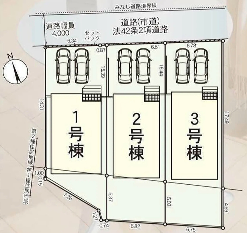 | 駐車場 | 2台 | 道路の幅員 | 北側4m公道 |