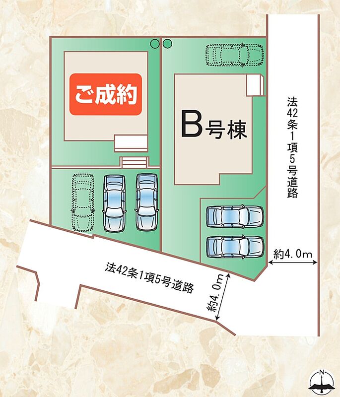 | 駐車場 | 3台 | 道路の幅員 | 南側4m公道、東側4m公道 |