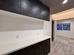 魅力2 ●キッチンと同じテイストのカップボード付き! お洒落で統一感があります♪